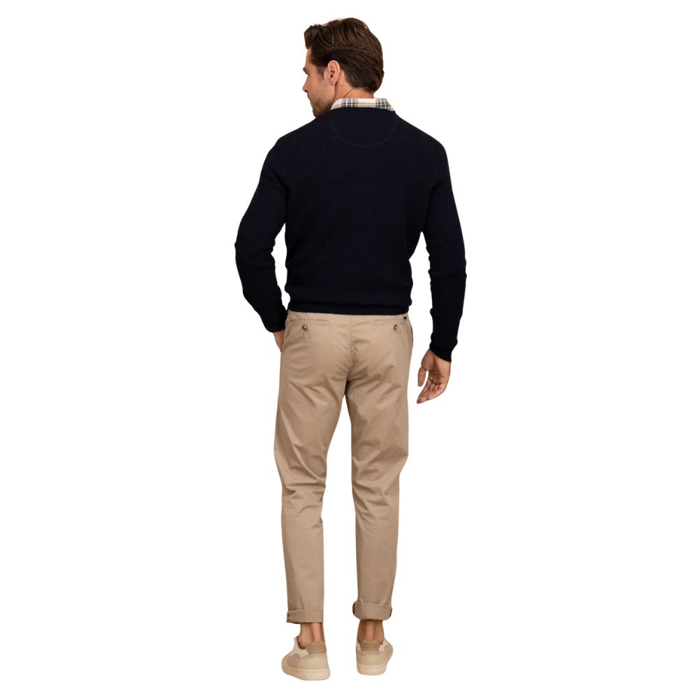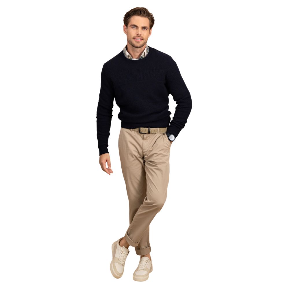 The Fynch-Hatton Self Patterned Navy Crew Neck Lambswool Jumper offers timeless comfort with a touch of texture. Crafted from premium lambswool, it provides natural warmth and softness while maintaining a refined silhouette. The subtle self-patterned design adds depth to the rich navy hue. A versatile knit that pairs effortlessly with shirts, chinos, or denim for smart-casual sophistication.