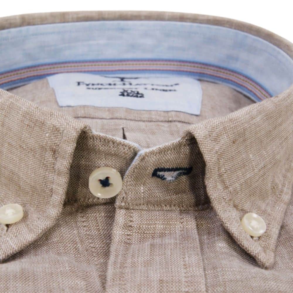 Fynch-hatton’s soft linen shirt in sand is a relaxed and light smart casual shirt perfect for warm weather. Button up, long sleeve with button cuffs and a top pocket make this a versatile shirt for all warm weather occasions.