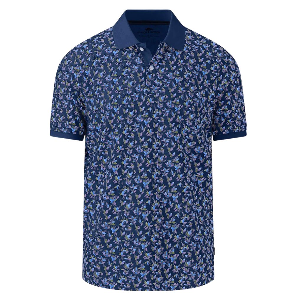 Fynch-Hatton midnight blue Polo Shirt made from sustainable cotton with a petal pattern.