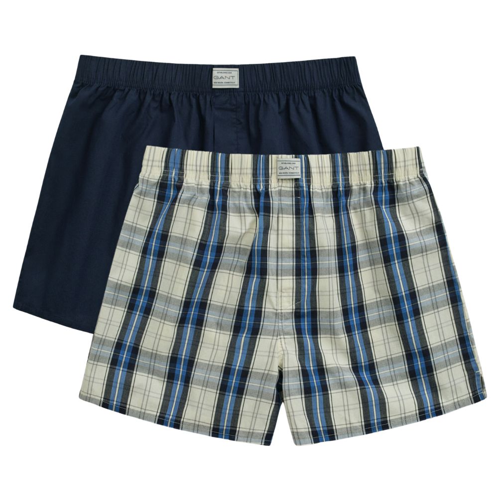 This GANT Two-Pack of Cotton Boxer Shorts offers everyday comfort and timeless style. Made from 100% cotton with a regular fit and long leg length, they feature two classic check patterns and an elastic waistband with repeating GANT logos.