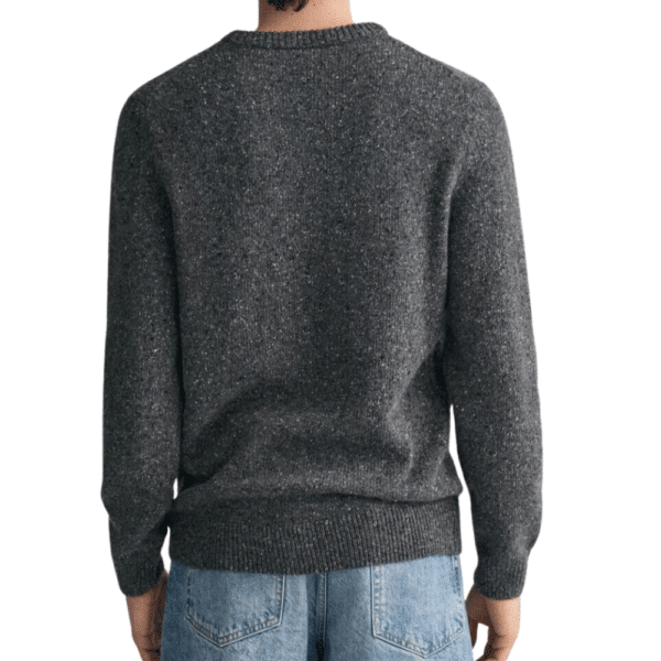 Crafted in a wool nepps knit and cut in a regular fit, this Anthracite crew neck jumper features ribbed detailing at the hem and cuffs and a tonal GANT logo embroidered at the chest. Pair this sweater with jeans or chinos, and an elevated sneaker for a quintessential preppy look.