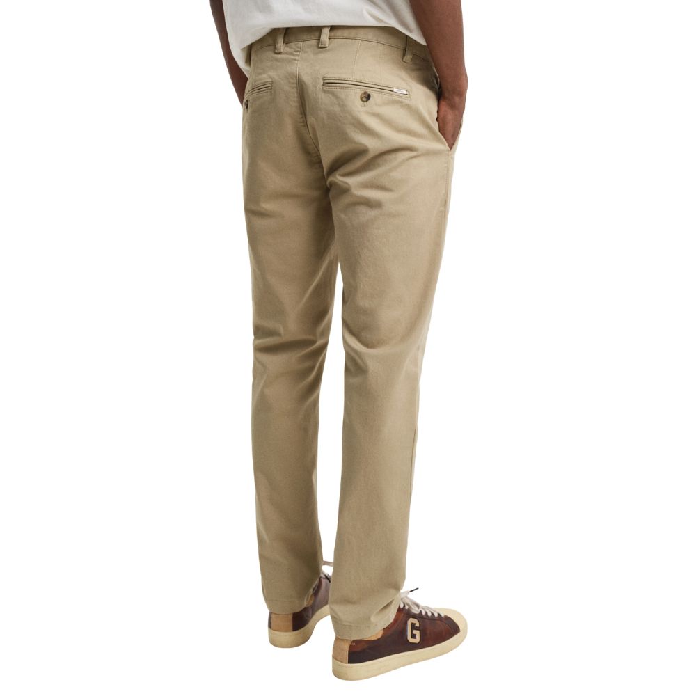 The GANT Beige Slim Fit Chino is a modern essential, offering a sleek, tailored silhouette without compromising comfort. Crafted from premium cotton, it features classic five-pocket styling and a soft, durable finish. Its versatile beige tone pairs effortlessly with shirts, knitwear, or blazers, making it perfect for both smart-casual and relaxed looks. A refined wardrobe staple built for everyday style.