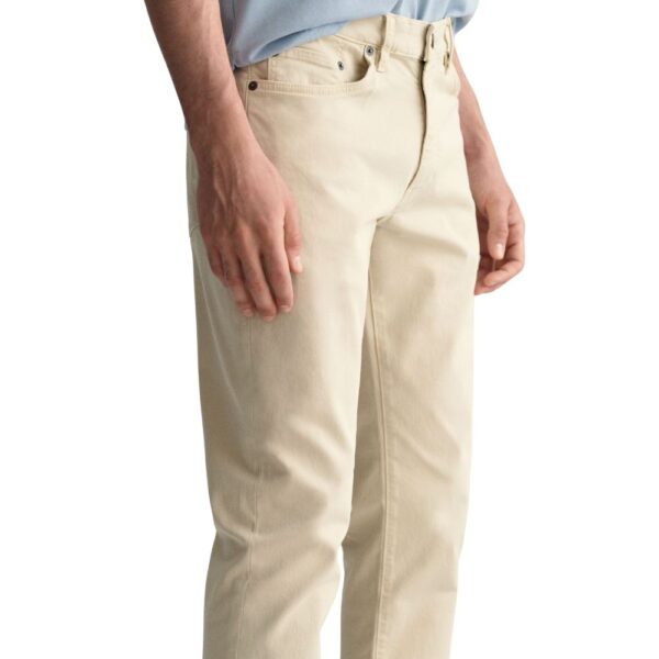Cut for a classic slim fit, these mid-rise beige jeans are the perfect combination of casual and contemporary. Detailed with a unique garment dye and crafted with a hint of stretch for comfort, they feature branded shank button and rivets, a zip fly and a leather logo patch at the back waistband.
