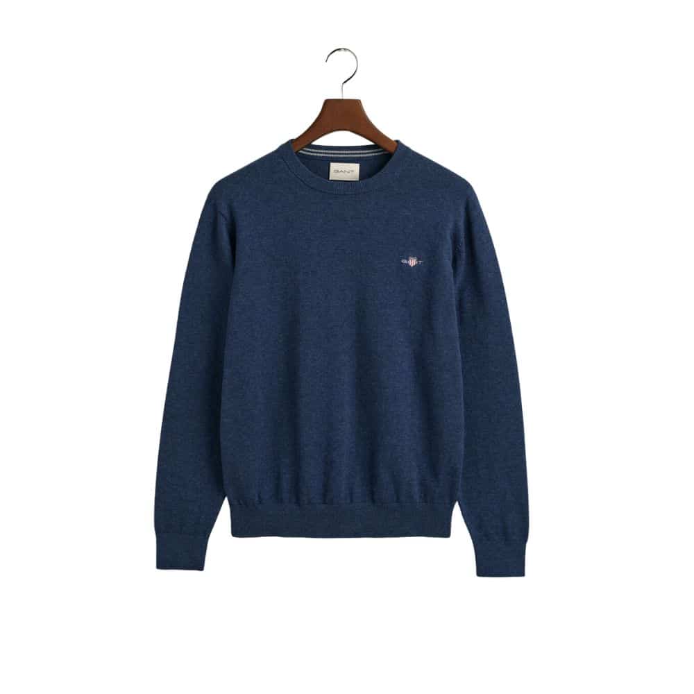 GANT Classic Cotton Crew Neck Sweater Jeans Blue Melange