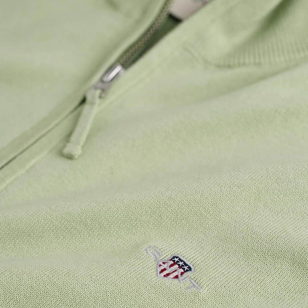 Crafted in cotton and cut in a regular fit, this Pistachio half zip features a ribbed detailing and a GANT shield graphic embroidered at the chest.