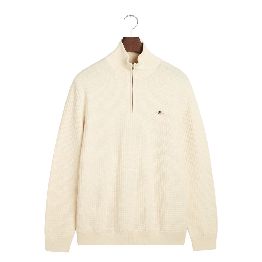 Fashioned out of mid-weight, organic cotton, this cardigan is the perfect piece for transitional weather. Crafted for a regular fit, it features a square textured knit design, a half-zip collar, rib endings and our iconic GANT shield graphic embroidered at the chest.