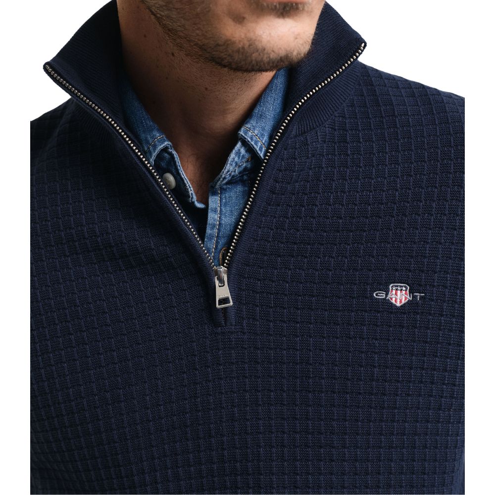 GANT Cotton Textured Navy Half Zip