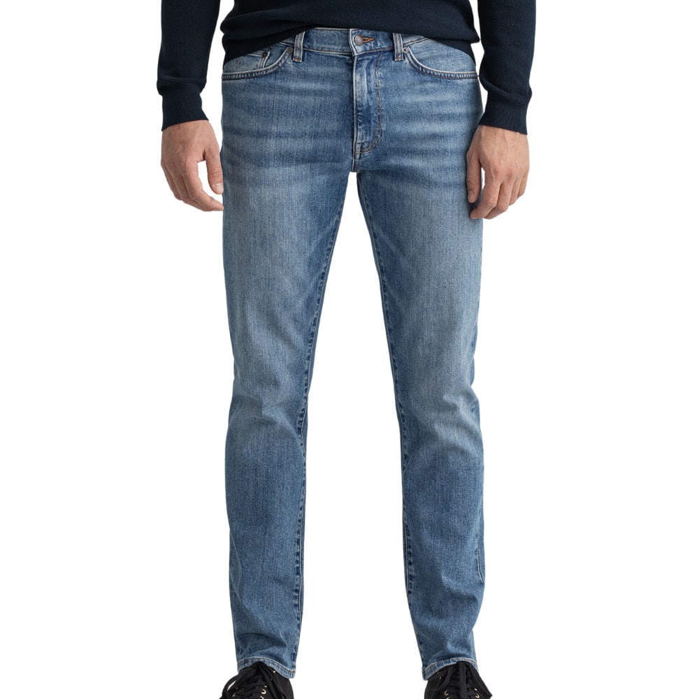 The Hayes Jean is our classic slim fit jean, featuring a mid rise silhouette that is slim over the hips, thigh, and leg for a streamlined look.. This pair is crafted from a medium-weight indigo-dyed cotton denim for an authentic look with added stretch for comfort.