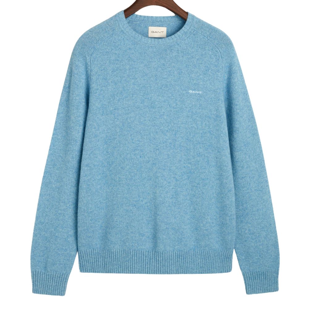 Knitted from a cosy wool-cotton blend, this Light Blue relaxed fit jumper is a polished winter basic. Essential for the colder months, this jumper is designed in a saddle shoulder knit construction and features a crew neck, ribbed detailing, and a GANT logo embroidered at the chest. This garment is intended for a relaxed fit. For a closer fit, we recommend sizing down.