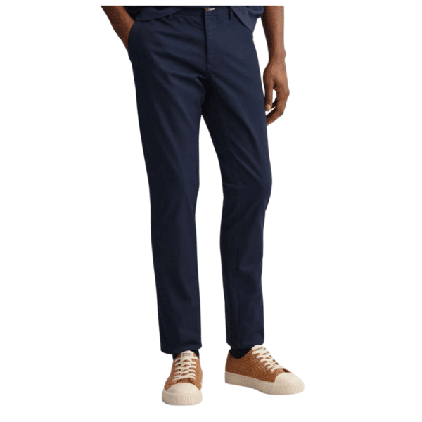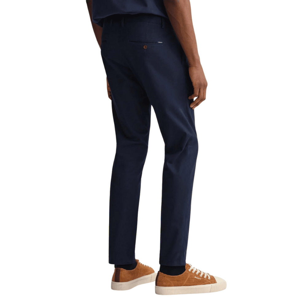 GANT took the wicking, breathable power of Tech Prep™ and have added it to their Hallden NavyChinos, the signature slim chino, featuring a mid rise and a fit that’s slim from the hip down to the leg. With a sleek, streamlined look, the Hallden Chinos are a modern take on this beloved preppy icon. Perfect for your most active days, the Tech Prep™ Hallden Marine Chinos will keep you cool, dry, and comfortable.