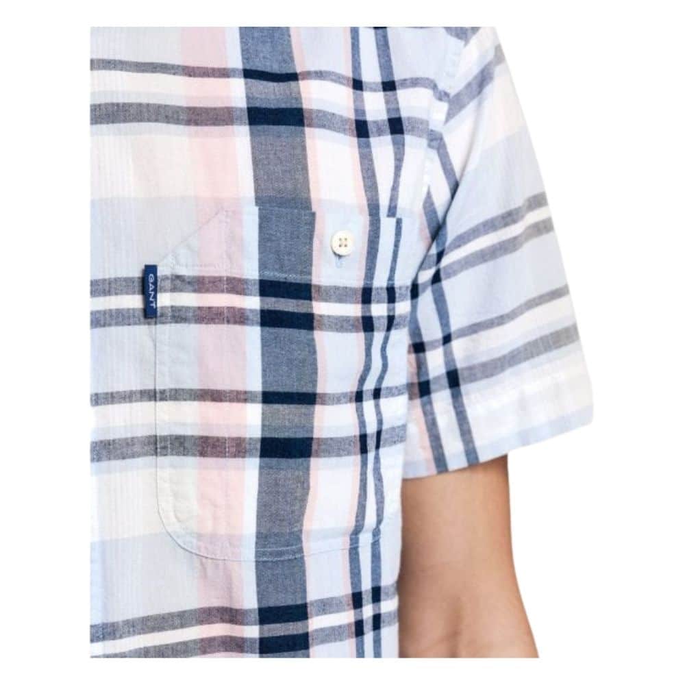 GANT Indigo Regular Fit Short Sleeve Plaid Shirt