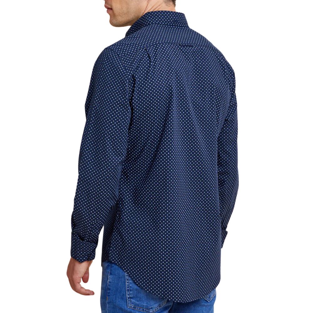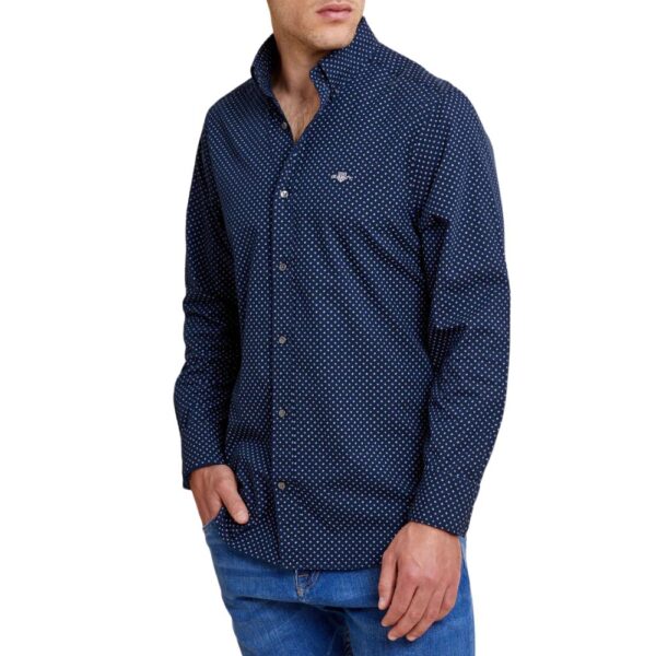 This GANT Marine Blue shirt is tailored for a slim fit and crafted in premium cotton poplin. Featuring an all-over micro print, this shirt includes a button-down collar, adjustable cuffs, a curved hem and a knife pleat with our signature locker loop at the back.