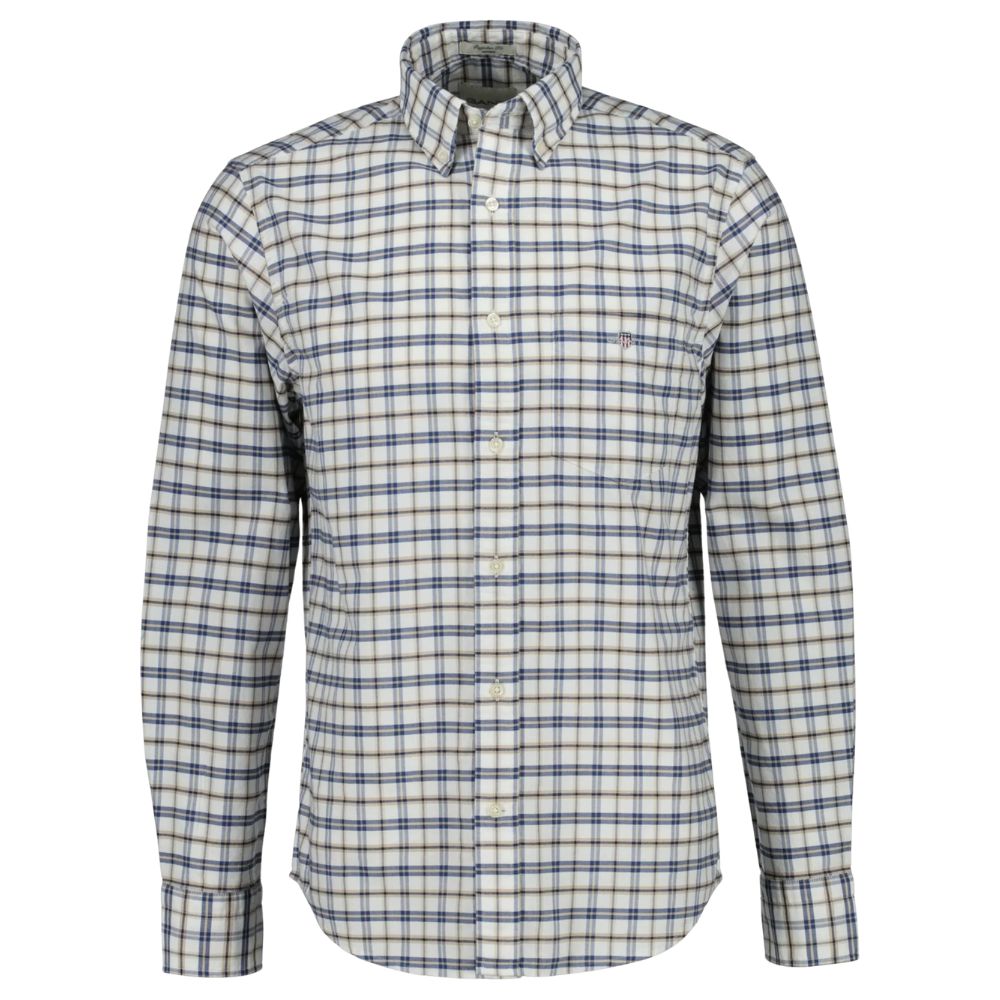 Designed to be worn untucked for a more casual approach, our Archive Oxford Shirt is crafted from organic cotton and features our tonal GANT logo embroidered at the chest. This garment-washed shirt uses a soft Oxford weave fabric found in our shirting archives. Featuring a yarn-dyed checked pattern, the design is constructed with a regular, untucked fit, classic button-down collar, adjustable cuffs and a curved hem. The shirt is also detailed with recycled polyester buttons and a box pleat with our signature locker loop at the back.