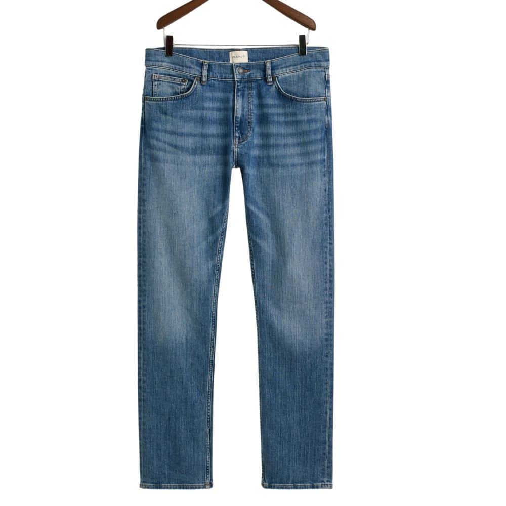 Crafted in cotton with a hint of stretch, these Mid Blue |Worn In jeans feature a regular fit for a comfortable, classic style. A versatile wardrobe staple, these jeans are easily dressed up or down for almost any occasion.