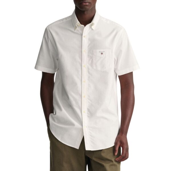 The most versatile and classic shirt in your closet, the GANT Regular Fit White Short Sleeve Oxford Shirt is a preppy essential that can be dressed up or down. Impeccably crafted and designed to flatter, this shirt is a timeless icon that will always be in style.
