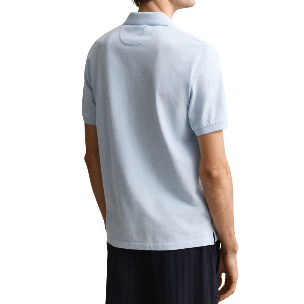 This GANT Sky Blue Two-Toned regular fit Polo shirt with a flat knit collar and two-button placket is perfect for the summer.