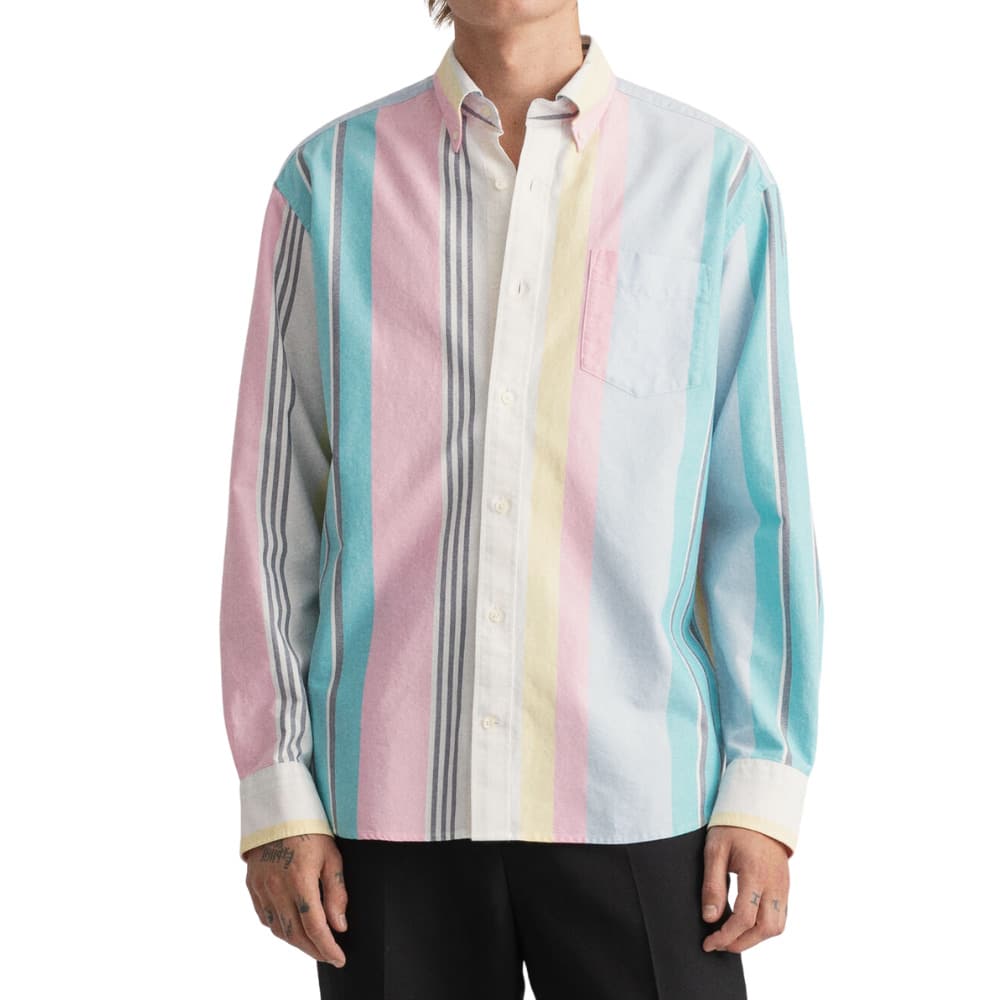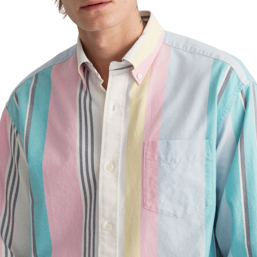 Evoking the ease of days on the beach, this relaxed fit shirt is for more than just the weekend. Crafted in a boldly striped cotton oxford, this button-down shirt features a printed stripe, a chest pocket, and a subtle GANT diamond G embroidery on the cuff.