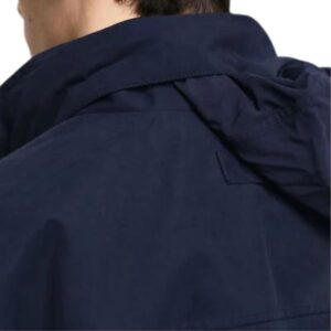 This innovative navy jacket is two styles in one. Constructed for a regular fit, the outer jacket layer features an emergency hood stored in the collar, hidden zip closure at the front and side patch pockets with a hand warming entrance. The lighter, detachable inner jacket features zip closure, welt pockets and elasticated cuffs. Both pieces are embellished with our iconic GANT logo embroidered at the chest. This jacket features a Durable Water Repellent treatment which will help to shed water in light weather conditions. If you’re unexpectedly caught in a downpour, please follow the care instructions closely to restore the performance and prolong the life of this garment.