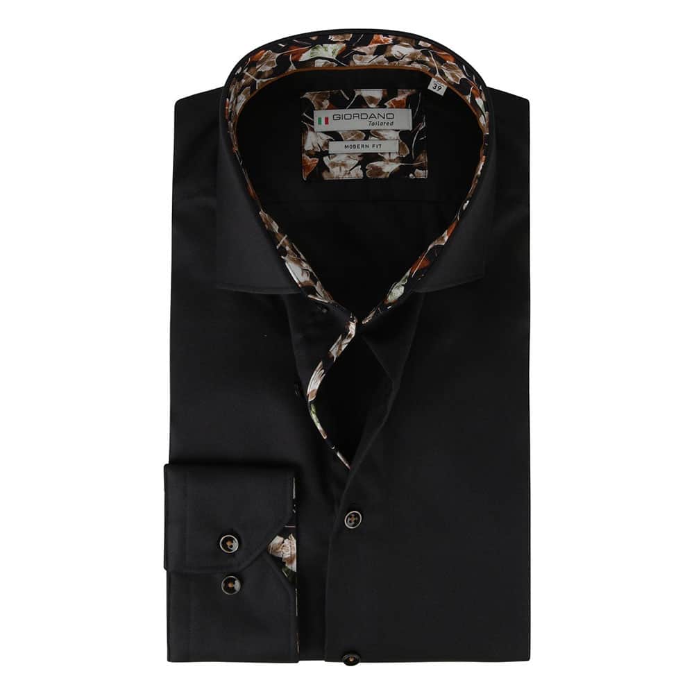 The ‘Baggio’ black shirt by Giordano is a stylish and cool shirt, featuring a modern fit, cutaway collar and printed detail on the underside of the cuffs and inside the collar. Pair this shirt with one of our jeans or trousers as well our selection of blazers for a sharp, well dressed look.