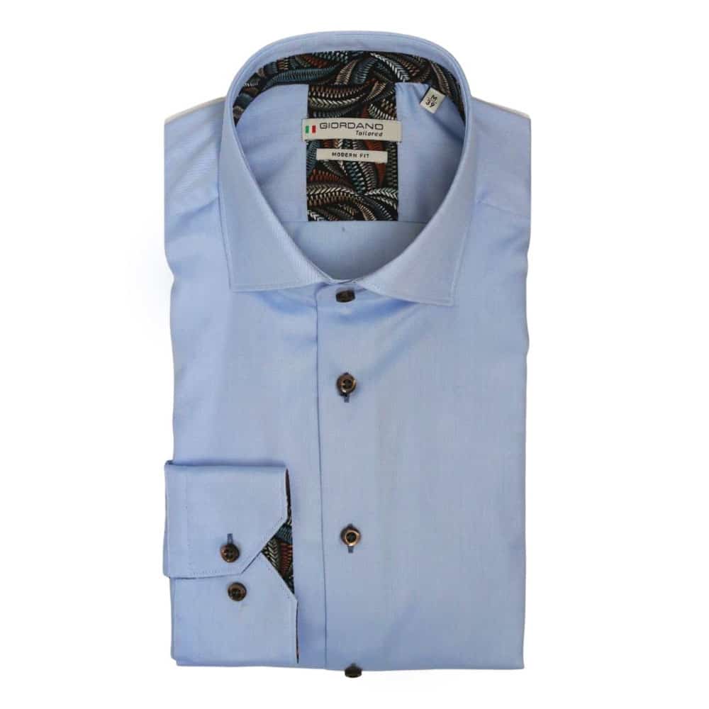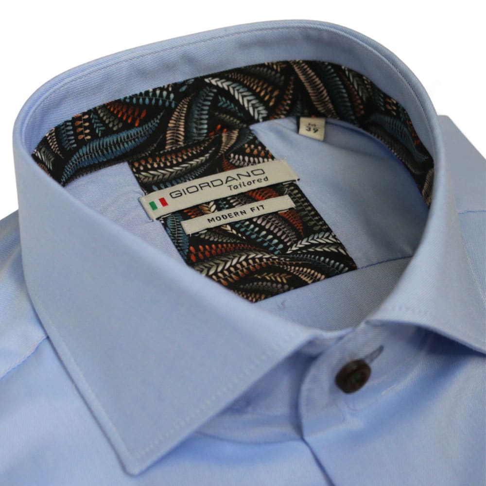 The ‘Baggio’ blue shirt by Giordano is a stylish and cool shirt, featuring a modern fit, cutaway collar and printed detail on the underside of the cuffs and inside the collar. Pair this shirt with one of our jeans or trousers as well our selection of blazers for a sharp, well dressed look.