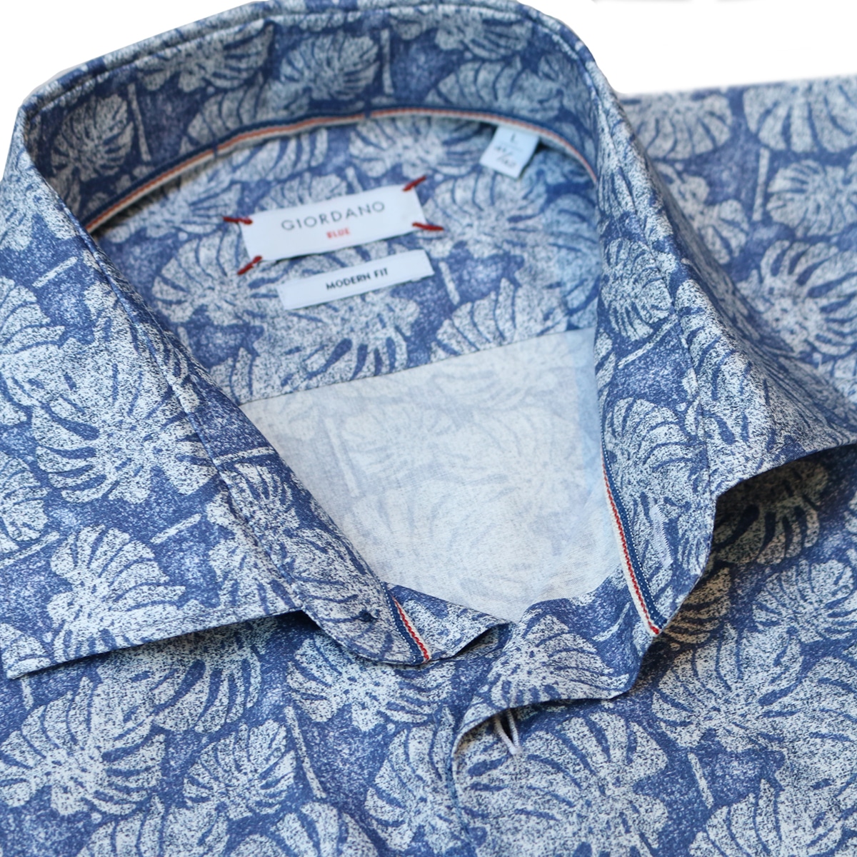This Giordano Hawaiian palm blue shirt is smart and stylish – featuring a modern cut, cutaway collar and cuffs and a cool all over print. Wear with both our selection of casual and smart clothing for a great outfit.