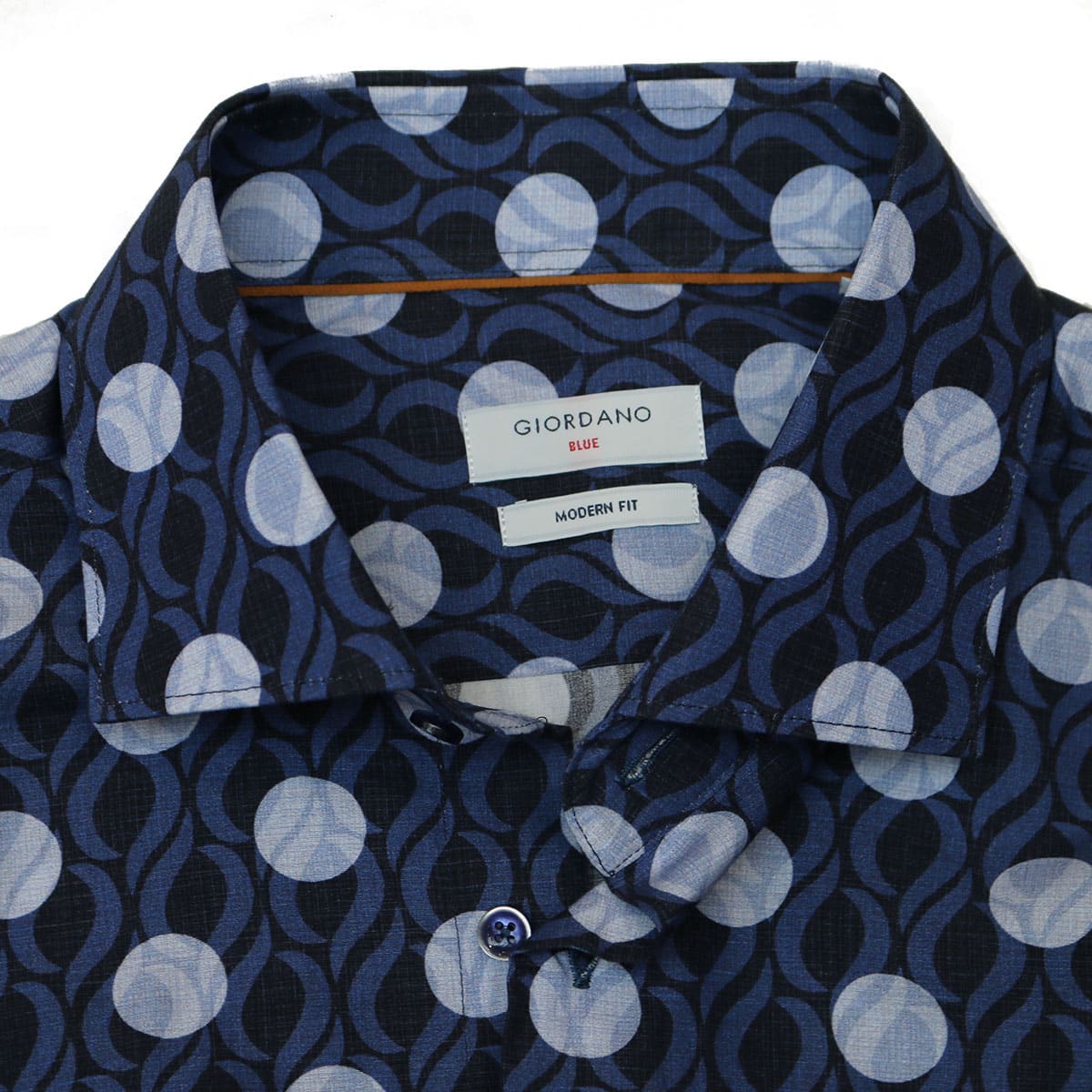 This Giordano navy shirt has a white circle print all over, made with 100% cotton giving you a breathable feel when wearing. Great piece for a party dress with jeans or trousers.