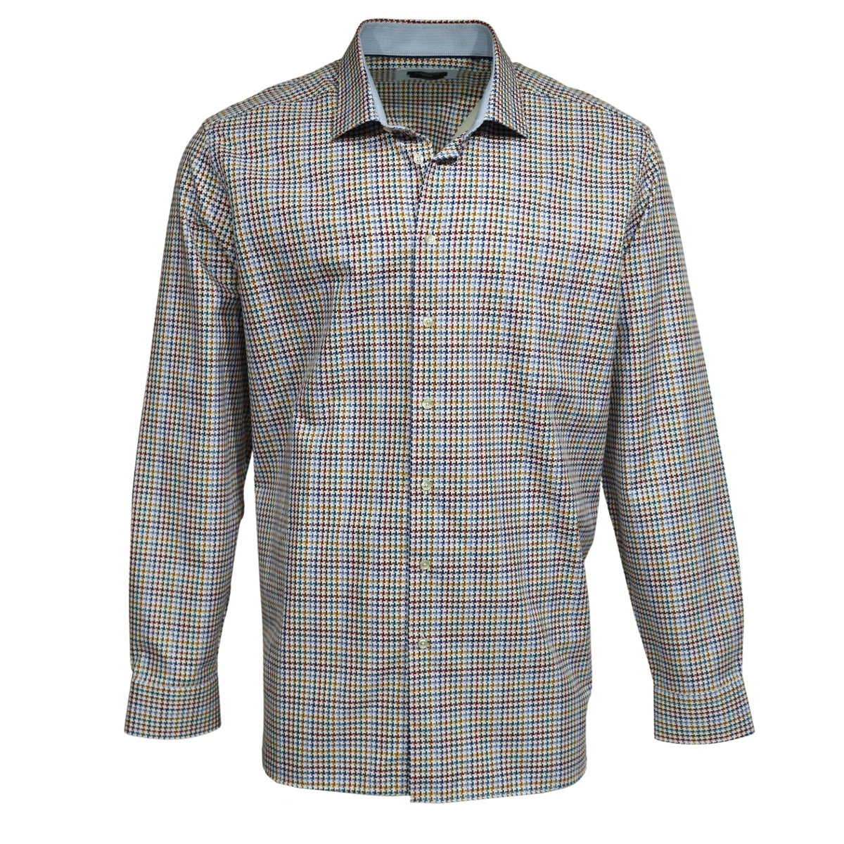 GIORDANO CREAM DOG TOOTH CHECK SHIRT