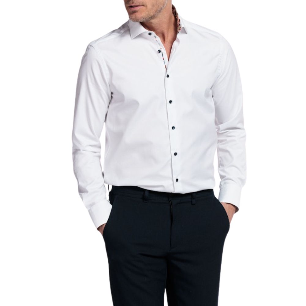 This “Maggiore” Giordano white shirt features a modern fit, cutaway collar and a abstract flower trim. Pair this shirt with one of our jeans or trousers as well our selection of jackets for a sharp, well dressed look.