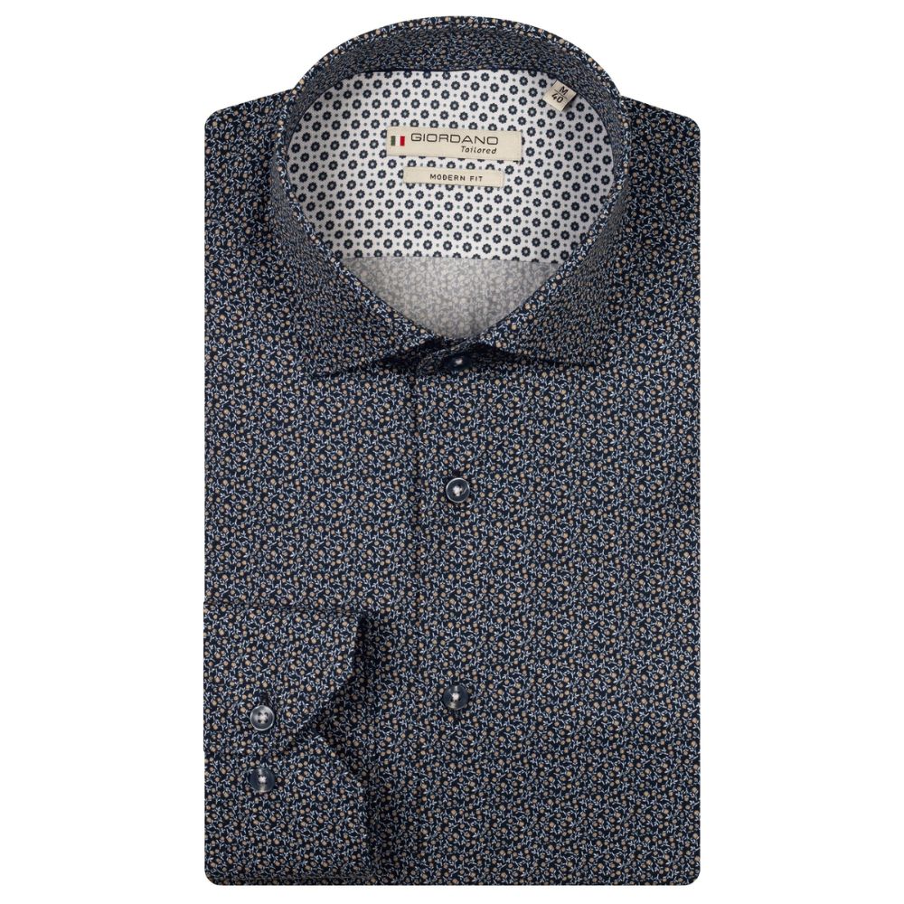A bold statement piece with refined detailing. Crafted from soft cotton, this navy shirt features an intricate blue floral print that adds character and sophistication. Perfect for elevating both casual and smart-casual outfits.
