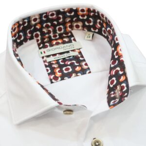 The ‘Maggiore’ shirt by Giordano is a stylish and cool shirt, featuring a modern fit, cutaway collar and a geometric floral trim. Pair this shirt with one of our jeans or trousers as well our selection of jackets for a sharp, well dressed look.