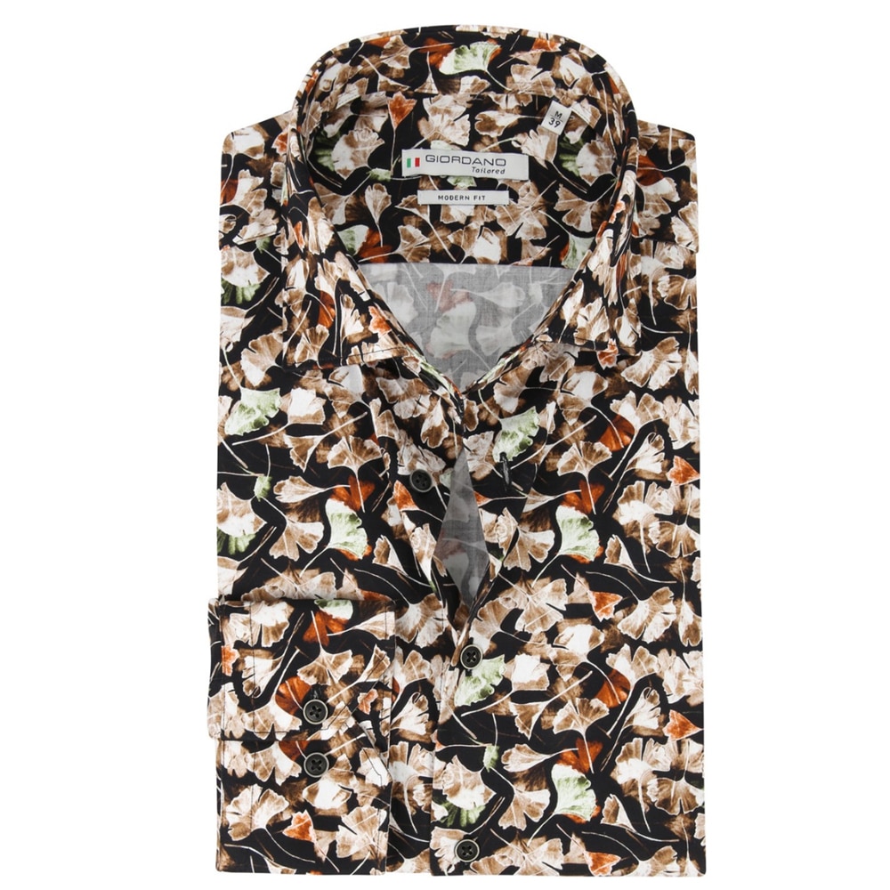 This ‘Maggiore’ brown shirt by Giordano is a stylish and cool shirt, featuring a modern fit, cutaway collar and all over printed twill fabric. Pair this shirt with one of our jeans or trousers as well our selection of blazers for a sharp, well dressed look.