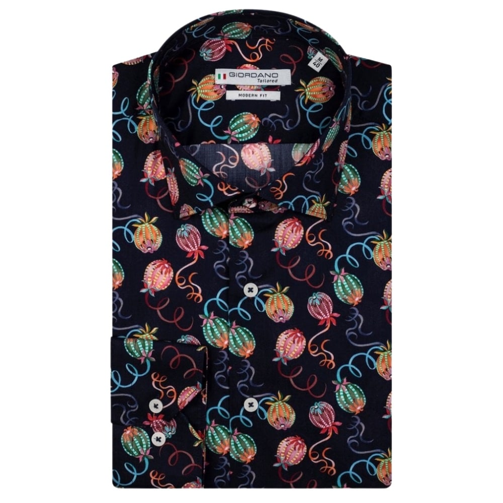 The ‘Maggiore’ shirt by Giordano is a stylish and cool shirt, featuring a modern fit, cutaway collar and all over printed fabric. Pair this shirt with one of our jeans or trousers as well our selection of jackets for a sharp, well dressed look.