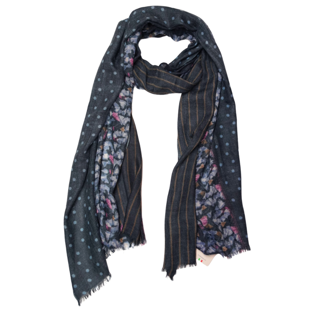Elevate your style with this exquisite Giordano Navy Flower and Polka Dot Scarf, adorned with an elegant polka dot and flower pattern. Crafted from premium quality wool, this scarf offers both warmth and softness, making it a perfect accessory for chilly days.