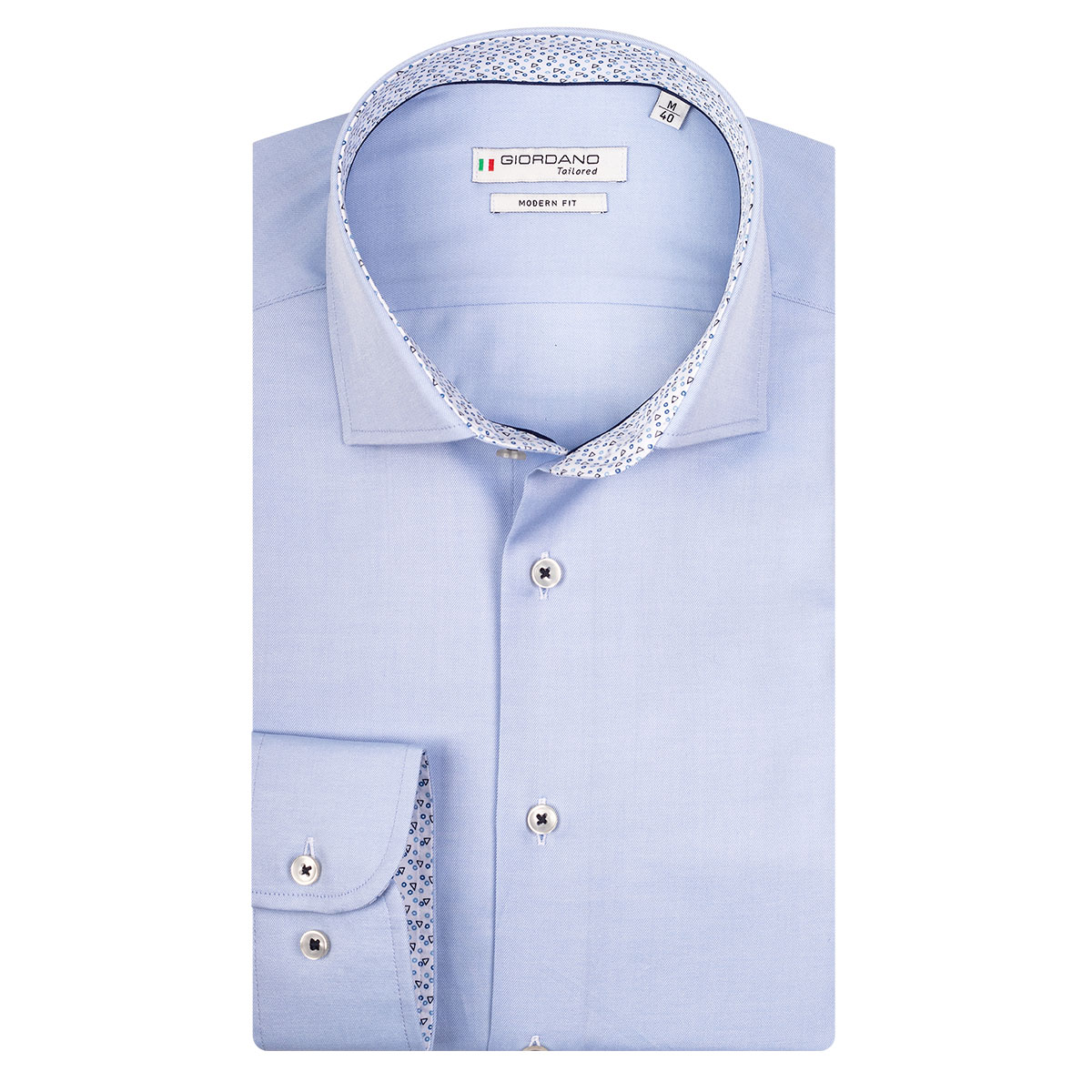 The Giordano Seaton blue shirt is smart and stylish – featuring a modern cut, cutaway collar and cuffs and a cool print inside the collar and cuffs. Wear with both our selection of casual and smart clothing for a great outfit.