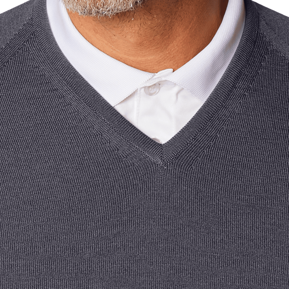 With a shift towards classic sweaters that look incredibly smart, our merino v-neck provides the perfect answer. Machine washable and available in a blend of classic colours, this style staple is equally at home on or off the golf course. It is knitted in 3D with Glenbrae’s exclusive SPIROL yarn to ensure it retains its shape, and moves as your body moves. 93% Merino Lambswool, 7% Nylon.