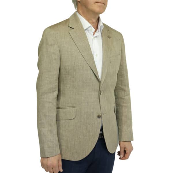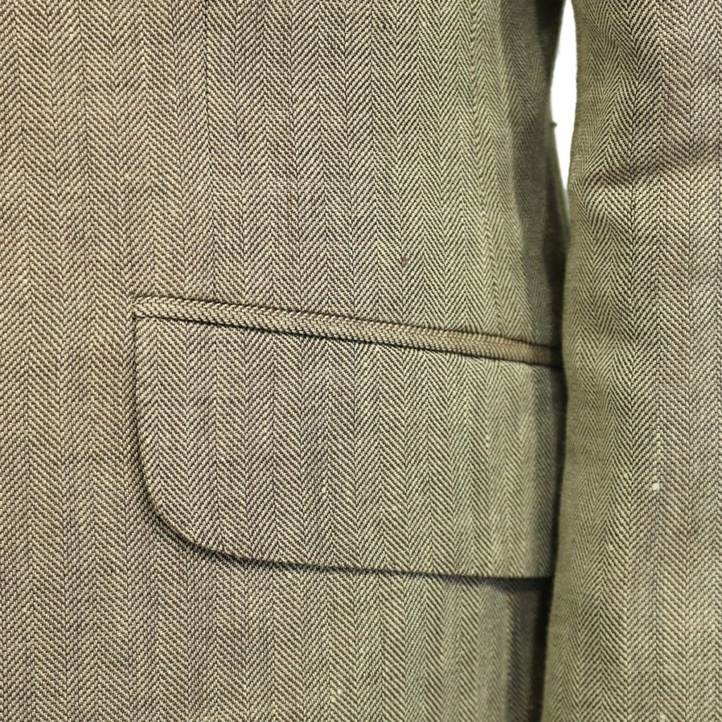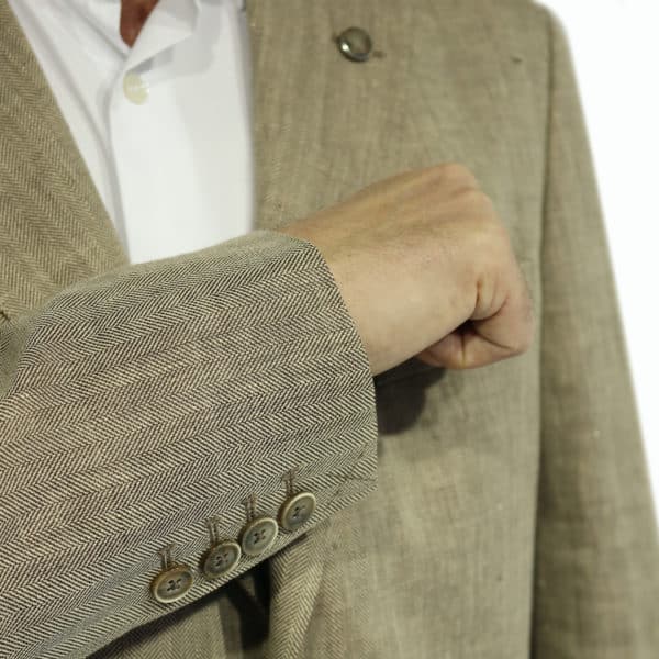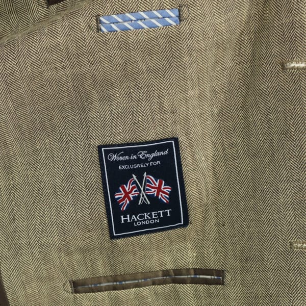 This Hackett Beige herringbone blazer jacket is half lined features side yents its lightweight linen/wool material makes a great garment for spring/summer.