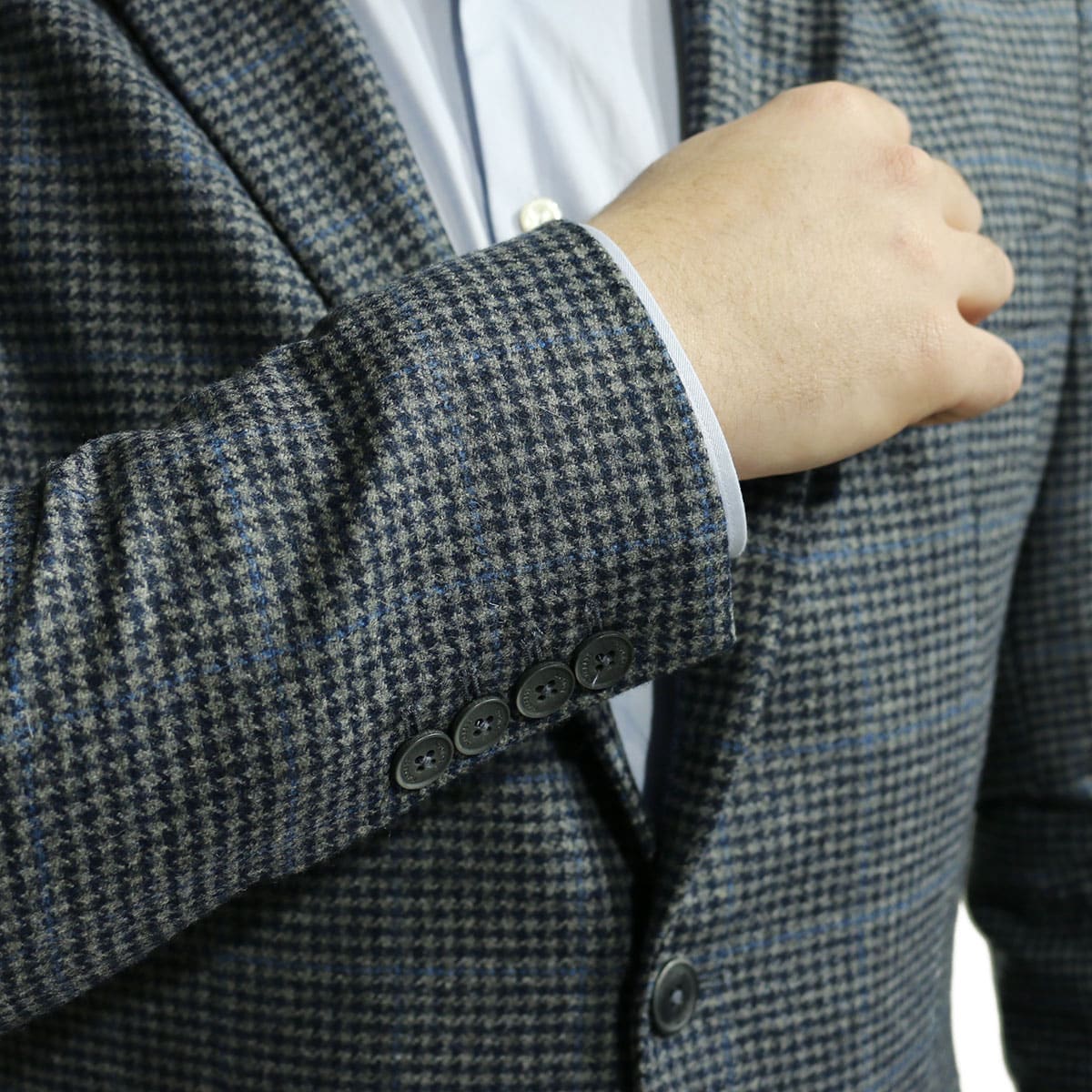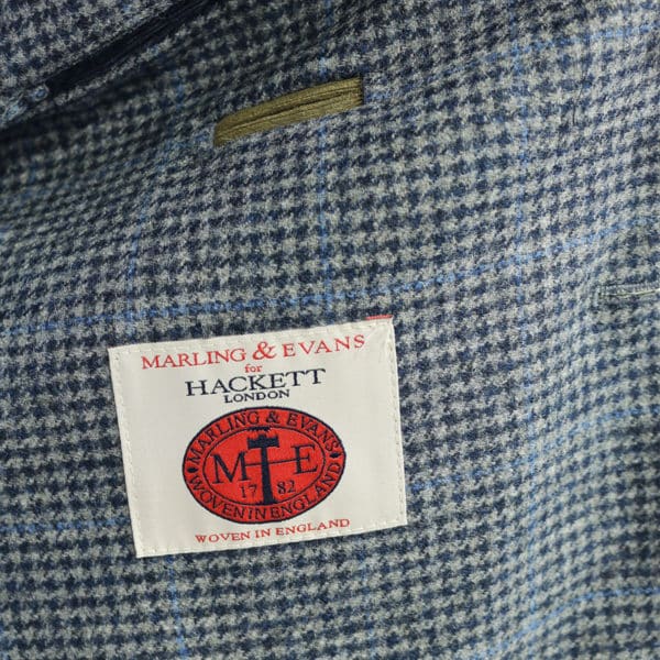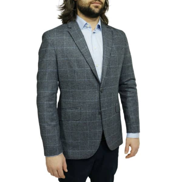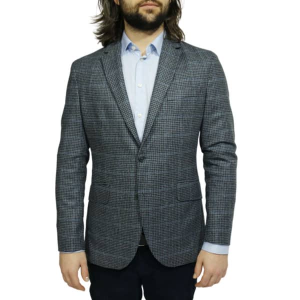 This Hackett houndstooth grey jacket also has a blue overcheck, it features working cuffs, side vents and is unlined this jacket can be worn formal or casual occasions.