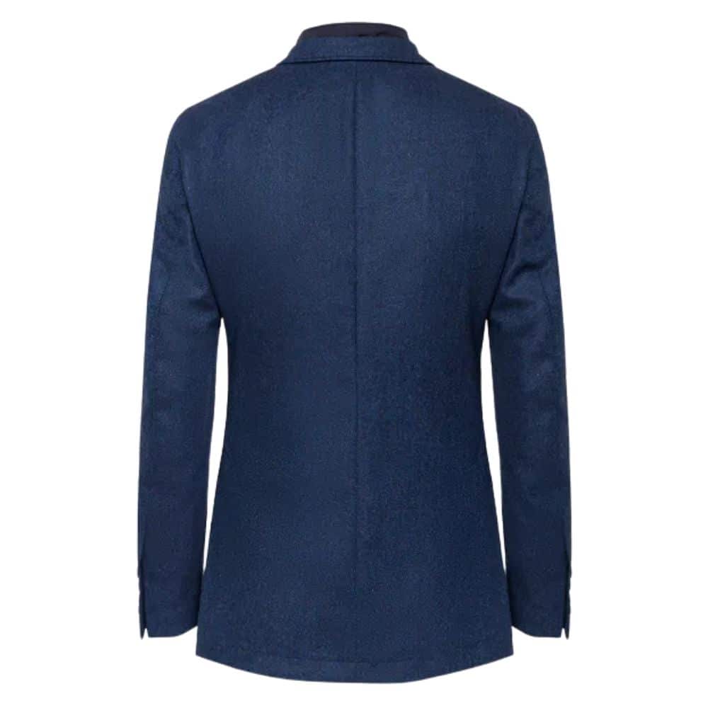 This Hackett jacket in navy is made from an English made herringbone wool fabric and has a zip insert for added insert. The jacket is a two button style with side flap pockets, and is cut to a slim fit for a modern shape. The zip insert has a low cut standing collar from a bomber collar and a diamond quilted techincal fabric; it can be zipped up for insulation from the cold.