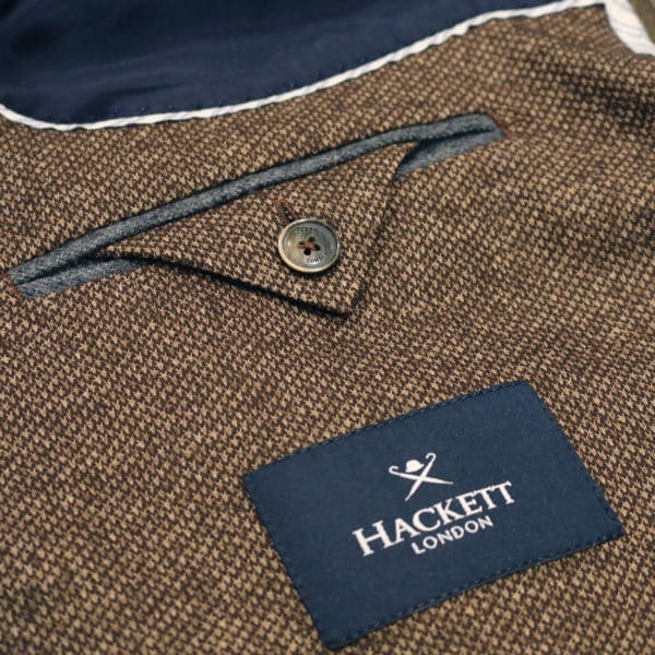 This Hackett Brown melange unstructured jacket features arm patches, working cuffs and notch lapels. It comes in a slim fit great for everyday uses.