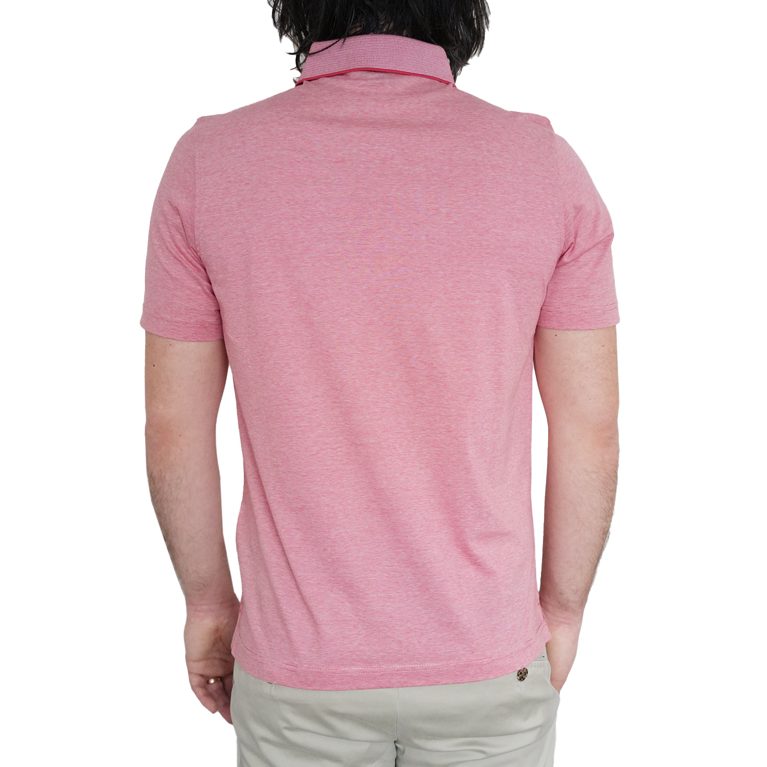 Add a sporty feel to your smart-casual wardrobe with this luxuriously soft cotton polo shirt. It features a fine micro stripe jersey knit and accentuated trims for the perfect finishing touch.
