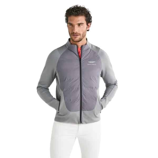 A slim fit contemporary hybrid with dynamic non-traditional quilting on the front for ultimate protection. It features a funnel neck and full zip closure, topped with two side pockets and a logo print on the chest.