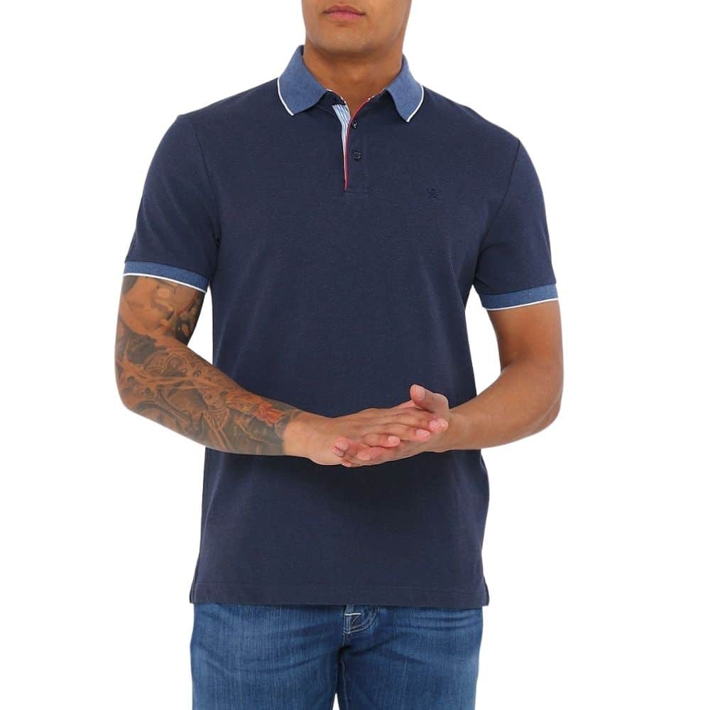 This Hackett polo in Blue is made from a cotton pique and cut for a slim fit. There are stylish features including a lighter blue collar with contrasting white tipping, red seersucker trim and Hackett’s iconic hat and cane logo embroidered at the chest