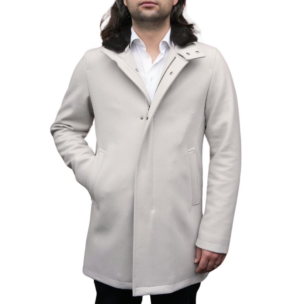 HERNO Flannel Cream Diagonal Twill Overcoat