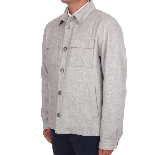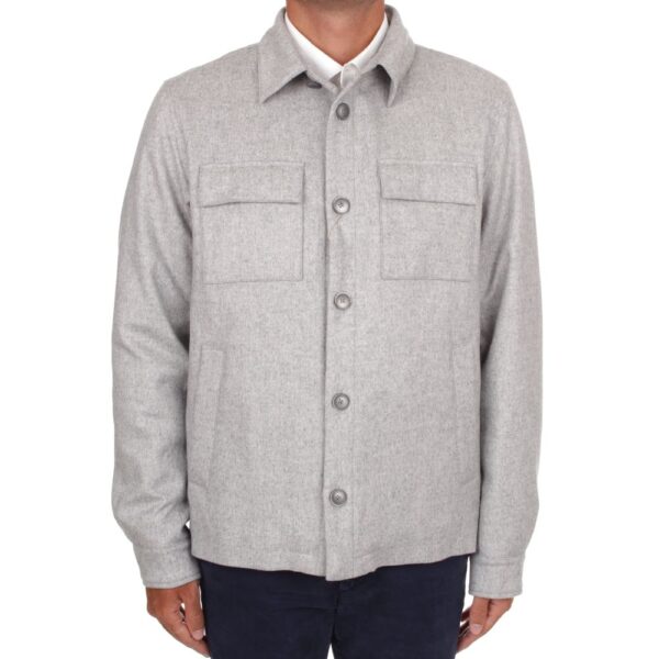 This luxurious overshirt from Herno is constructed with a Cotton and Cashmere for Loro Piana woven and constructed in Italy, equipped with their Storm system fabric. Made as a Regular fit featuring metalic buttons to fasten the jacket along with 2 discrete pockets and 2 larger front pockets.