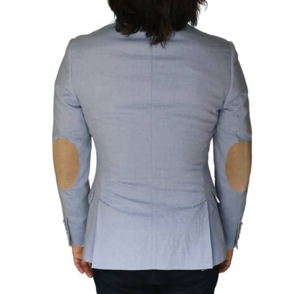 The Holland Esquire Pipe Trim Smart Jacket in Light Blue colour is a stylish, quirky take on sophisticated dressing. Made from a lightweight and breathable cotton oxford fabric, this jacket is suited for warmer temperatures. Featuring a single breasted shape, this jacket has a two button front complete with notch lapels aswell as patch pockets, chest pocket and also interior pockets. Handsome details feature on this jacket, including a piped trim on the lapels with a stripe patern; this trim also features on the buttons. The elbows feature suede textured patches whilst the lapels, chest pocket and flap pockets have stitched edges for a cool design touch.