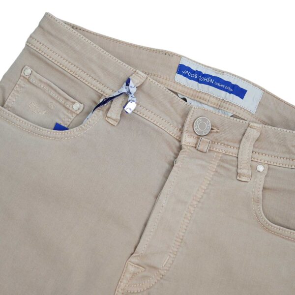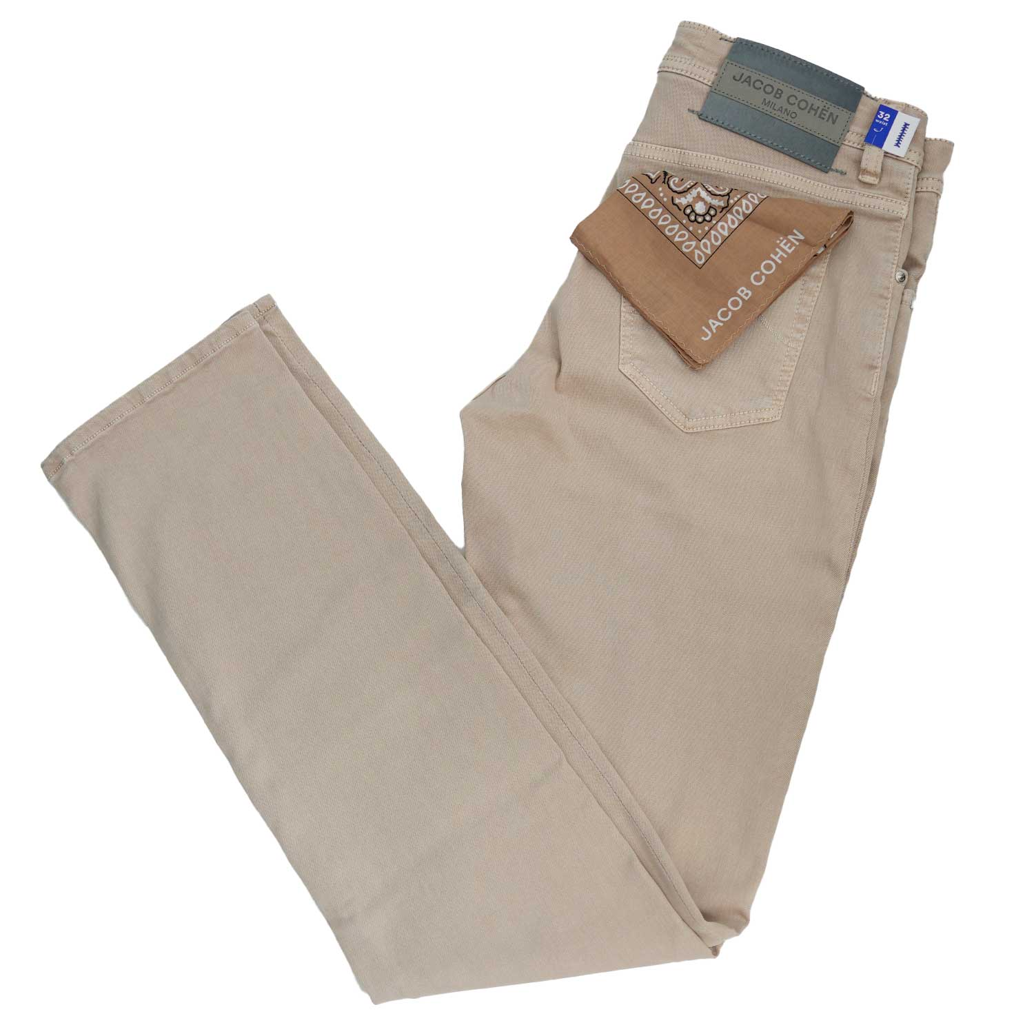The Jacob Cohen bard beige gabardines are expertly handcrafted in Italy, the slim fit jeans have been tailored using a stretch cotton elastane blend offering super shape retention and softness. Featuring a button fly, classic five pocket design and branded waistband tab. All Jacob Cohen jeans come complete with a signature complimentary pocket square to accessorise your looks.