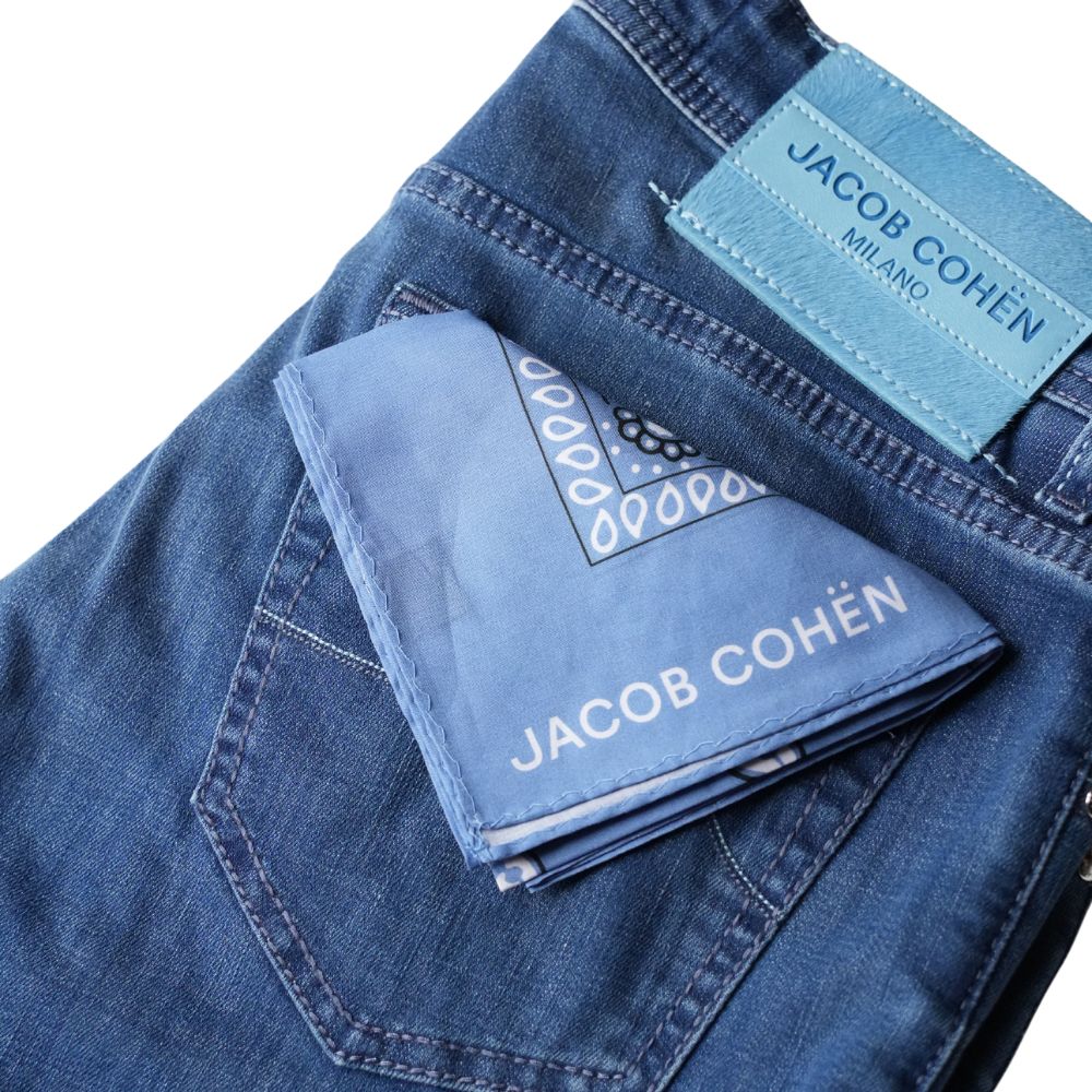 The Jacob Cohen bard faded mid blue jeans are a premium option perfect for the denim connoisseur. Expertly handcrafted in Italy, the slim fit jeans have been tailored using a stretch cotton lyocell blend offering superb shape retention and softness. Featuring a button fly, classic five pocket design and branded waistband tab. All Jacob Cohen jeans come complete with a signature complimentary pocket square to accessorise your looks.