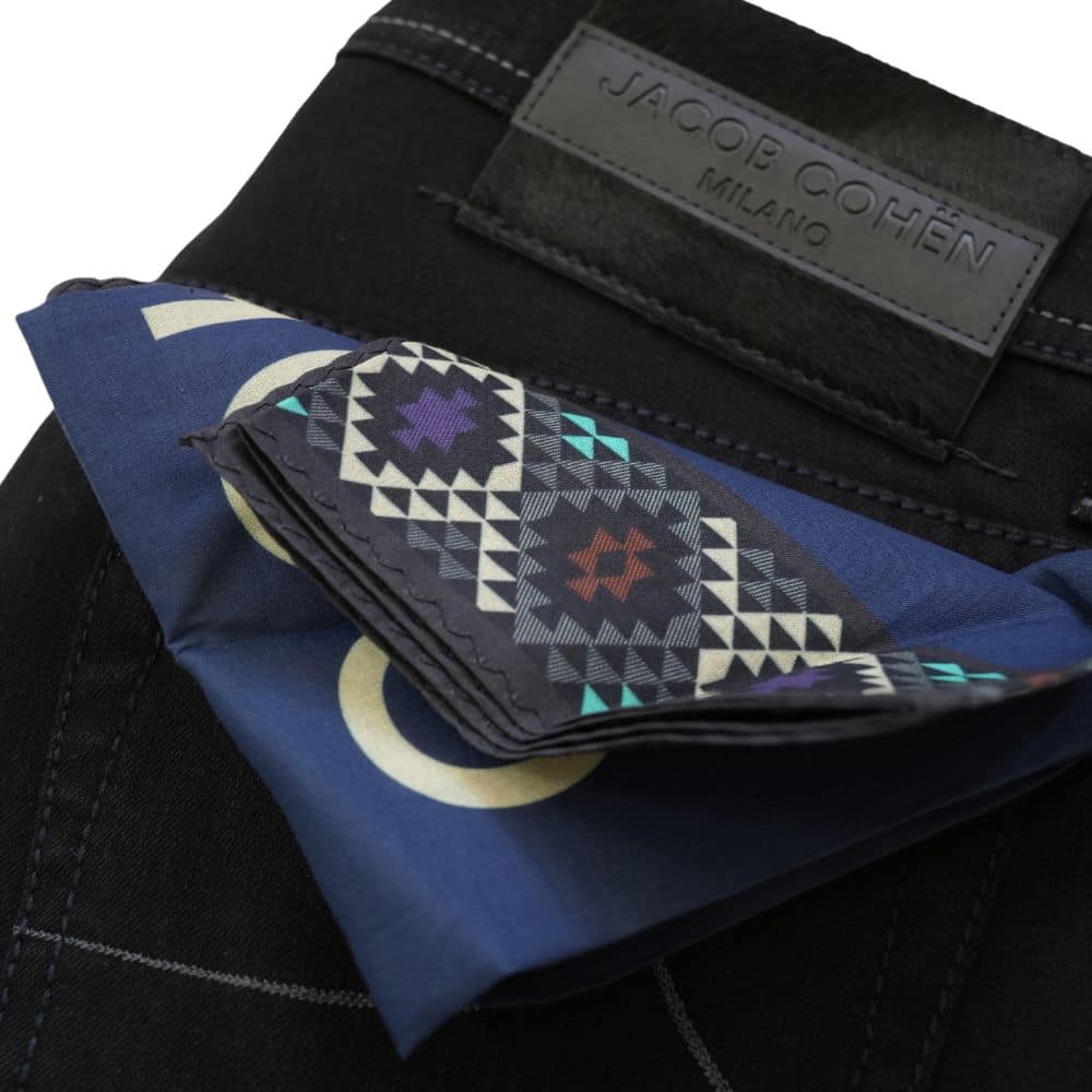 Featuring a button fly, classic five pocket design and branded waistband tab. All Jacob Cohen jeans come complete with a signature complimentary pocket square to accessorise your looks.