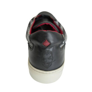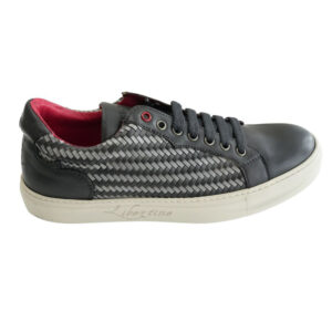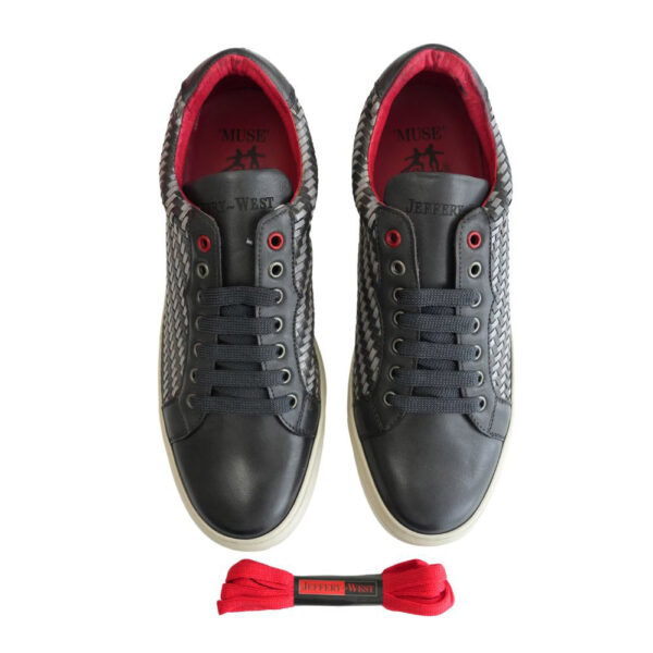 Anthracite Ash calf cup sole trainers with hand woven leather side panels.