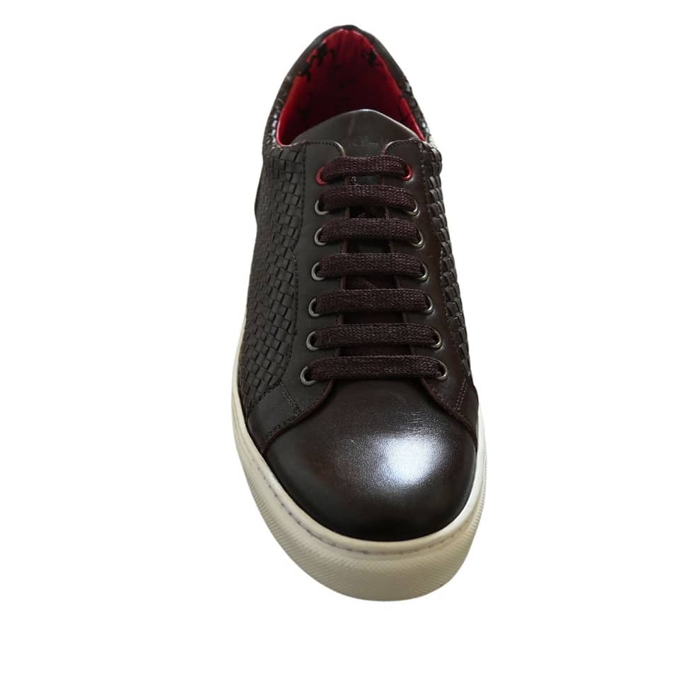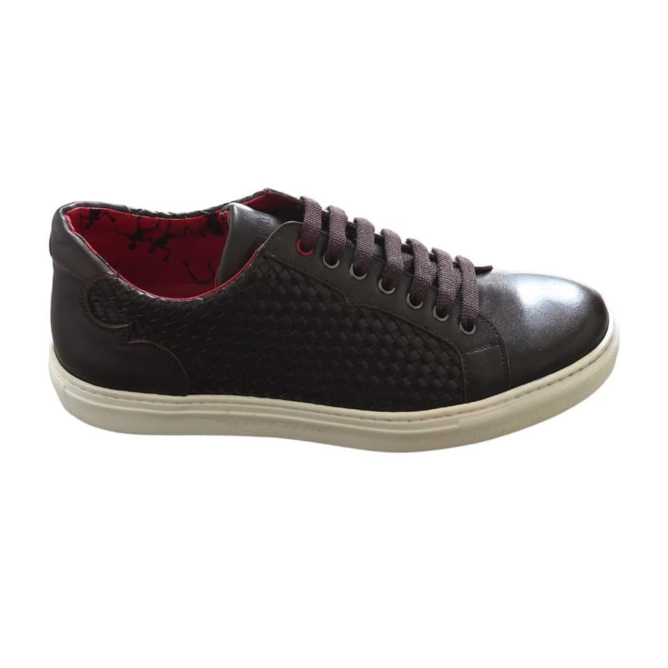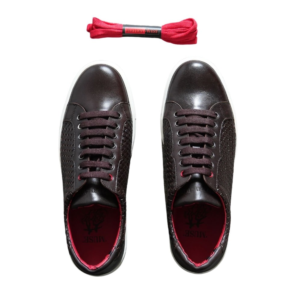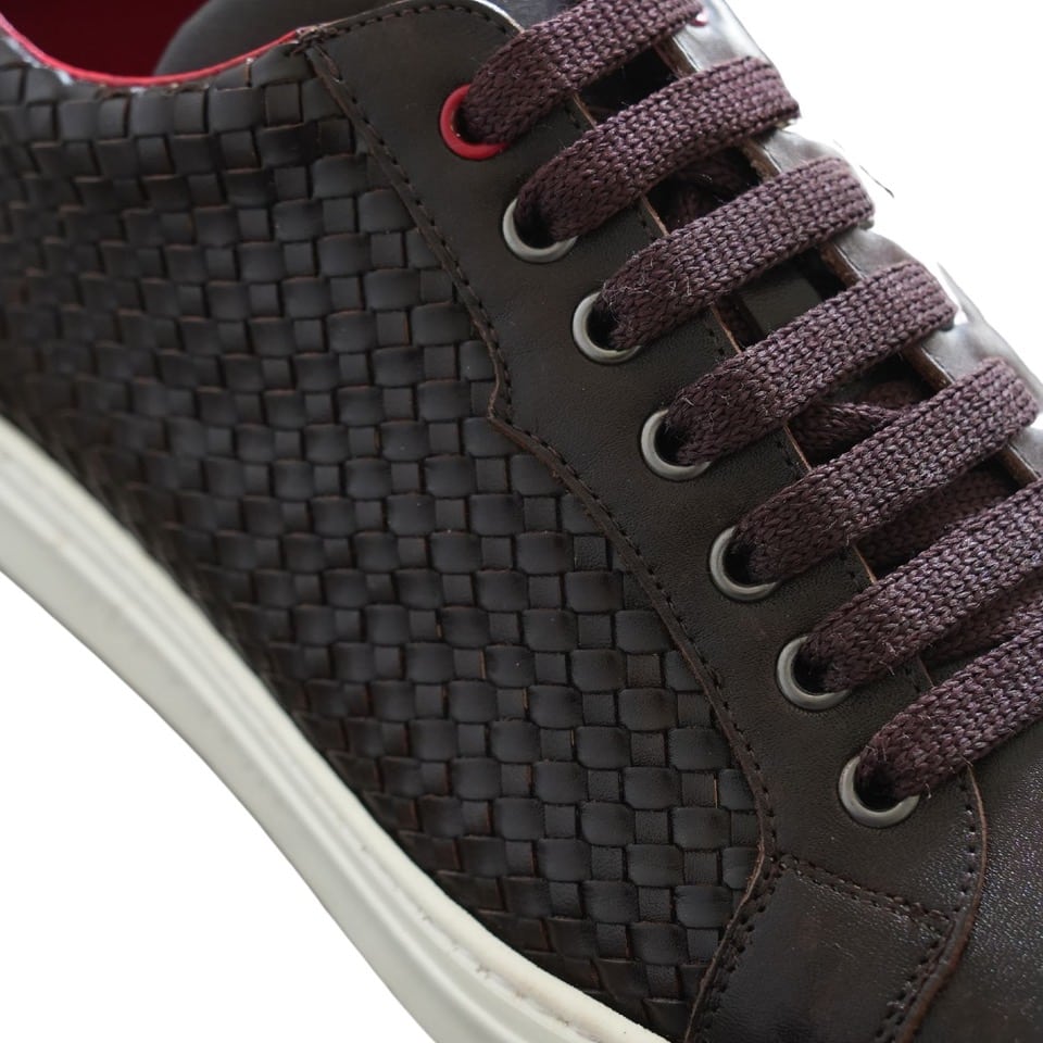 The ‘Sunrise’ Cup sole trainers on our Apollo last shape features genuine hand woven leather side panels – featured here in brown toledo hand coloured calf.